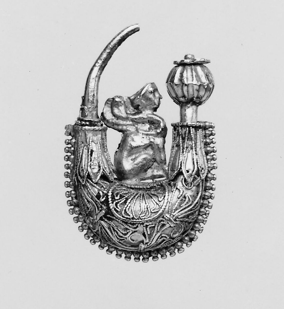 - Title:Gold boat-shaped earring with a sphinx