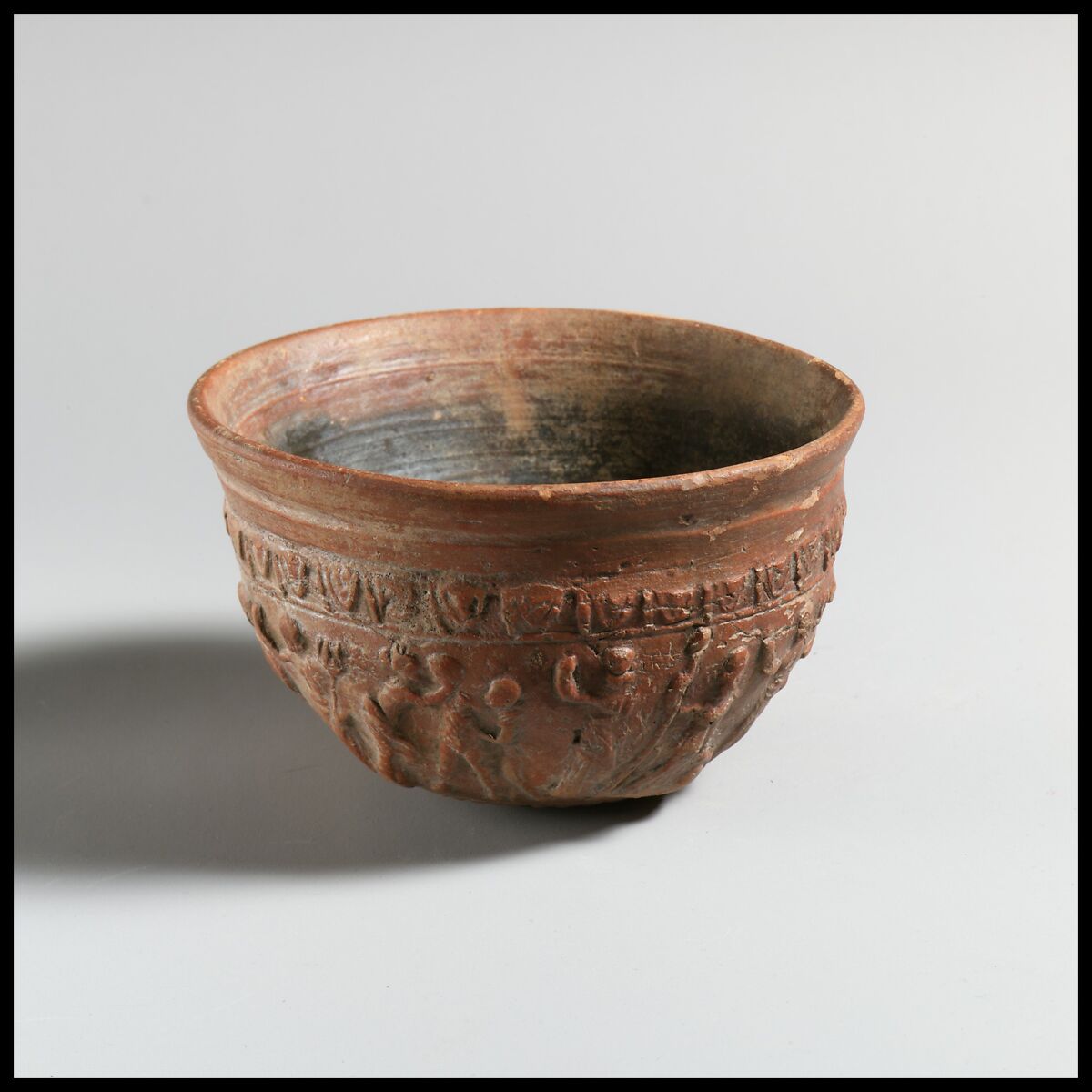 Relief-decorated pottery became more popular than painted pottery during the Hellenistic period. The name Megarian was first given to this type of mold-made relief bowl in the late nineteenth century, because some of the first known examples were said to have come from the city of Megara. It has since been demonstrated that bowls of this type, which were produced at a number of different centers, originated in Athens in the third quarter of the third century B.C.