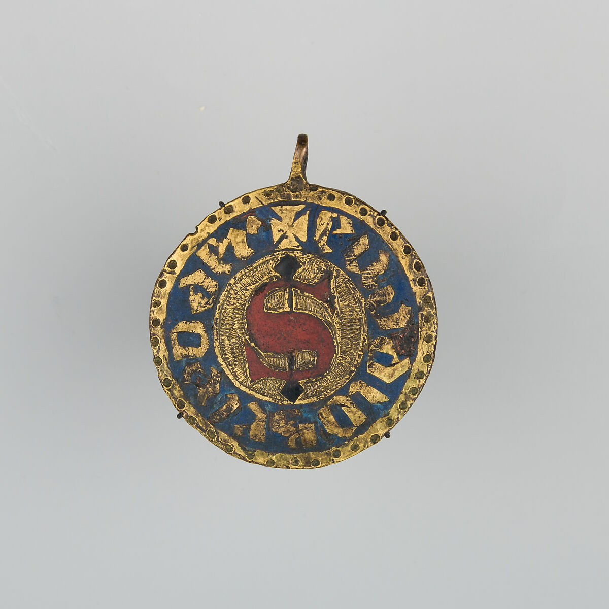 Heraldry, or coat-of-arms, were vitally important in Europe throughout the Middle Ages and the Renaissance. Heraldic emblems were used to identify noble families, cities, regions, and even countries. In addition to being displayed on shields and flags, heraldry was incorporated into architectural decoration on the interior and the exterior of buildings, on furniture, works of art, clothing, and horse equipment. Harness pendants, like this example, would have been attached to a headstall, bridle, or other straps making up the tack of a horse ridden by a nobleman or noblewoman, or a member of their household. Many harness pendants also have decoration that is simply ornamental, or have symbols that are not specifically heraldic in nature.