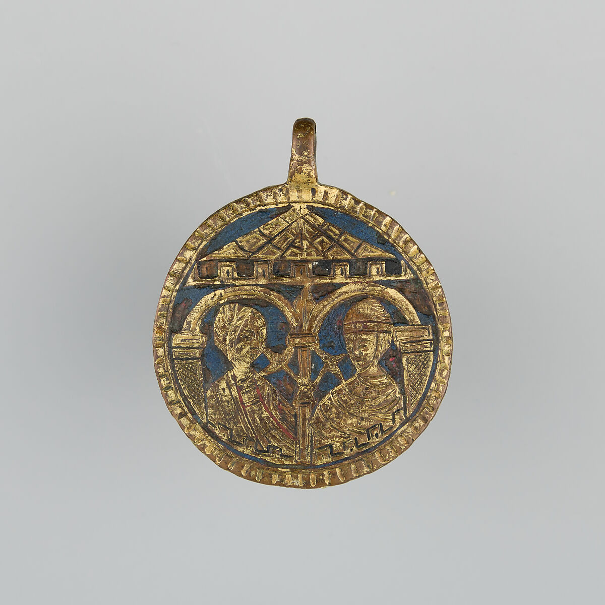 Heraldry, or coat-of-arms, were vitally important in Europe throughout the Middle Ages and the Renaissance. Heraldic emblems were used to identify noble families, cities, regions, and even countries. In addition to being displayed on shields and flags, heraldry was incorporated into architectural decoration on the interior and the exterior of buildings, on furniture, works of art, clothing, and horse equipment. Harness pendants, like this example, would have been attached to a headstall, bridle, or other straps making up the tack of a horse ridden by a nobleman or noblewoman, or a member of their household. Many harness pendants also have decoration that is simply ornamental, or have symbols that are not specifically heraldic in nature.