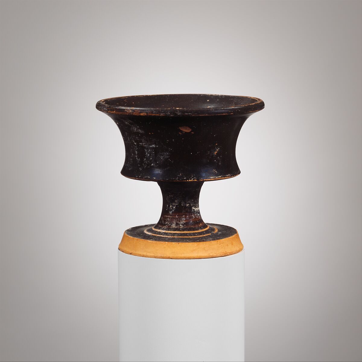 This useful shape was popular from the last quarter of the sixth century B.C. into the third quarter of the fifth. It may have contained foods such as nuts, olives, and other small fruits.