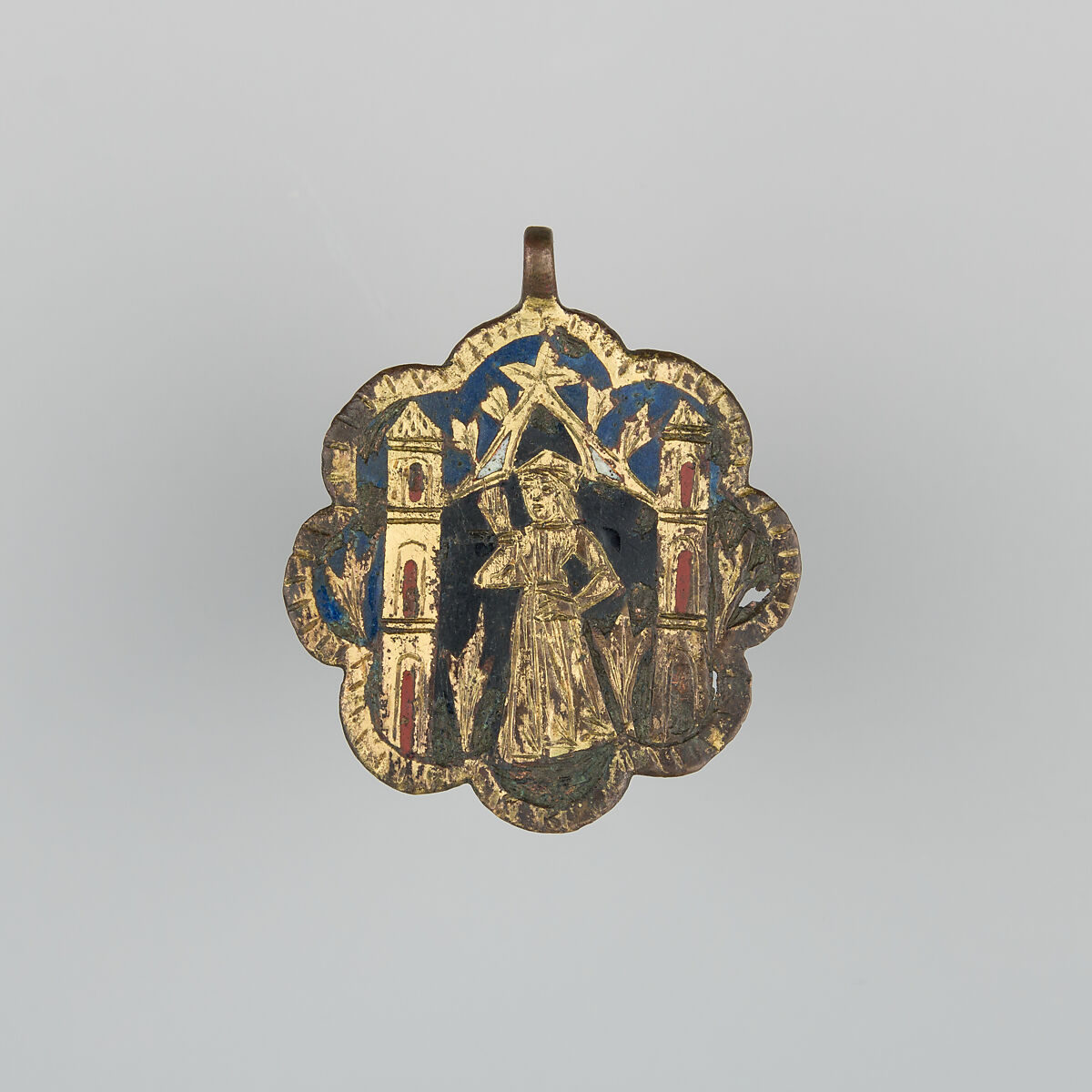 Heraldry, or coat-of-arms, were vitally important in Europe throughout the Middle Ages and the Renaissance. Heraldic emblems were used to identify noble families, cities, regions, and even countries. In addition to being displayed on shields and flags, heraldry was incorporated into architectural decoration on the interior and the exterior of buildings, on furniture, works of art, clothing, and horse equipment. Harness pendants, like this example, would have been attached to a headstall, bridle, or other straps making up the tack of a horse ridden by a nobleman or noblewoman, or a member of their household. Many harness pendants also have decoration that is simply ornamental, or have symbols that are not specifically heraldic in nature.