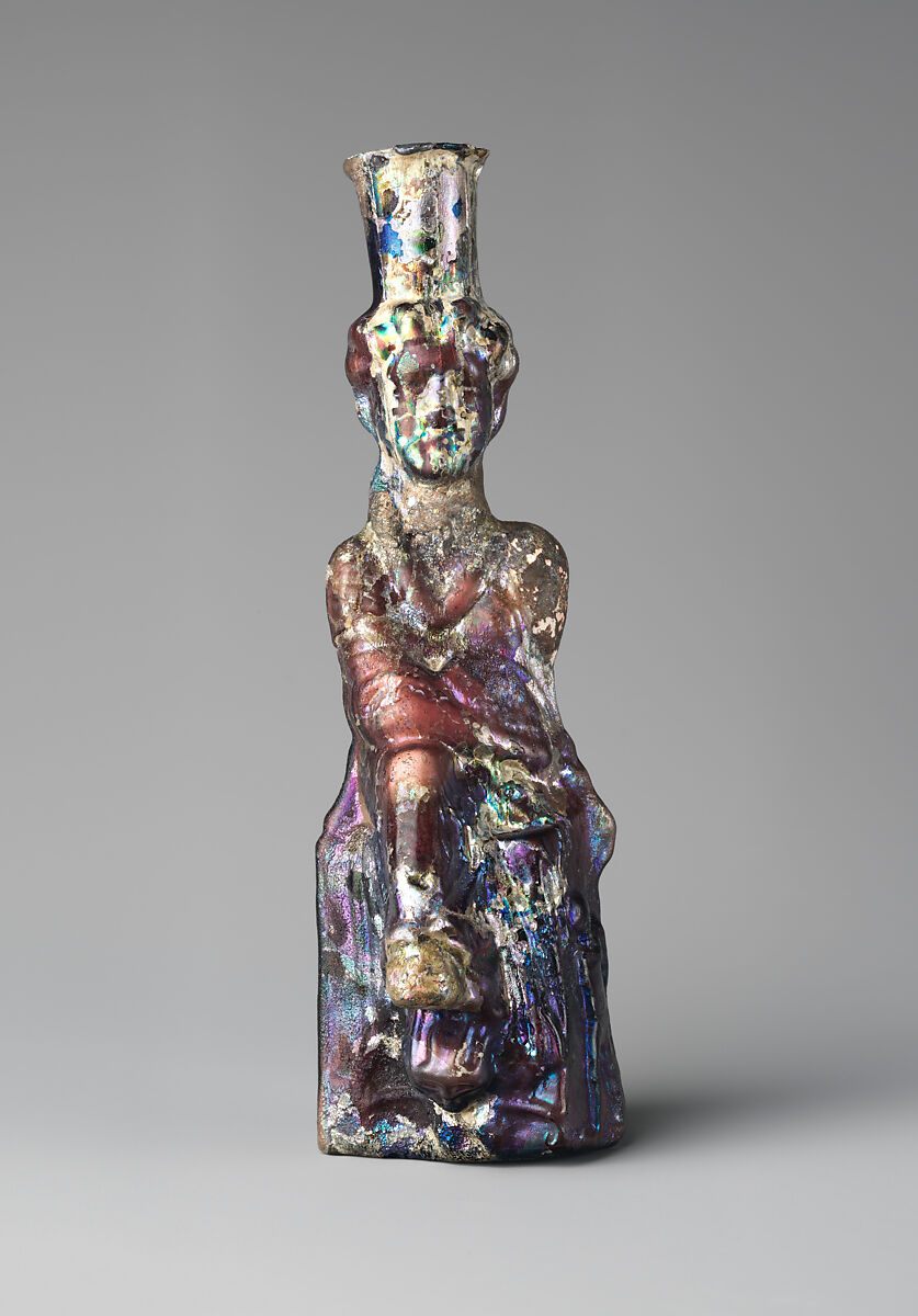 - Title:Glass bottle in the form of Tyche (Good Fortune)