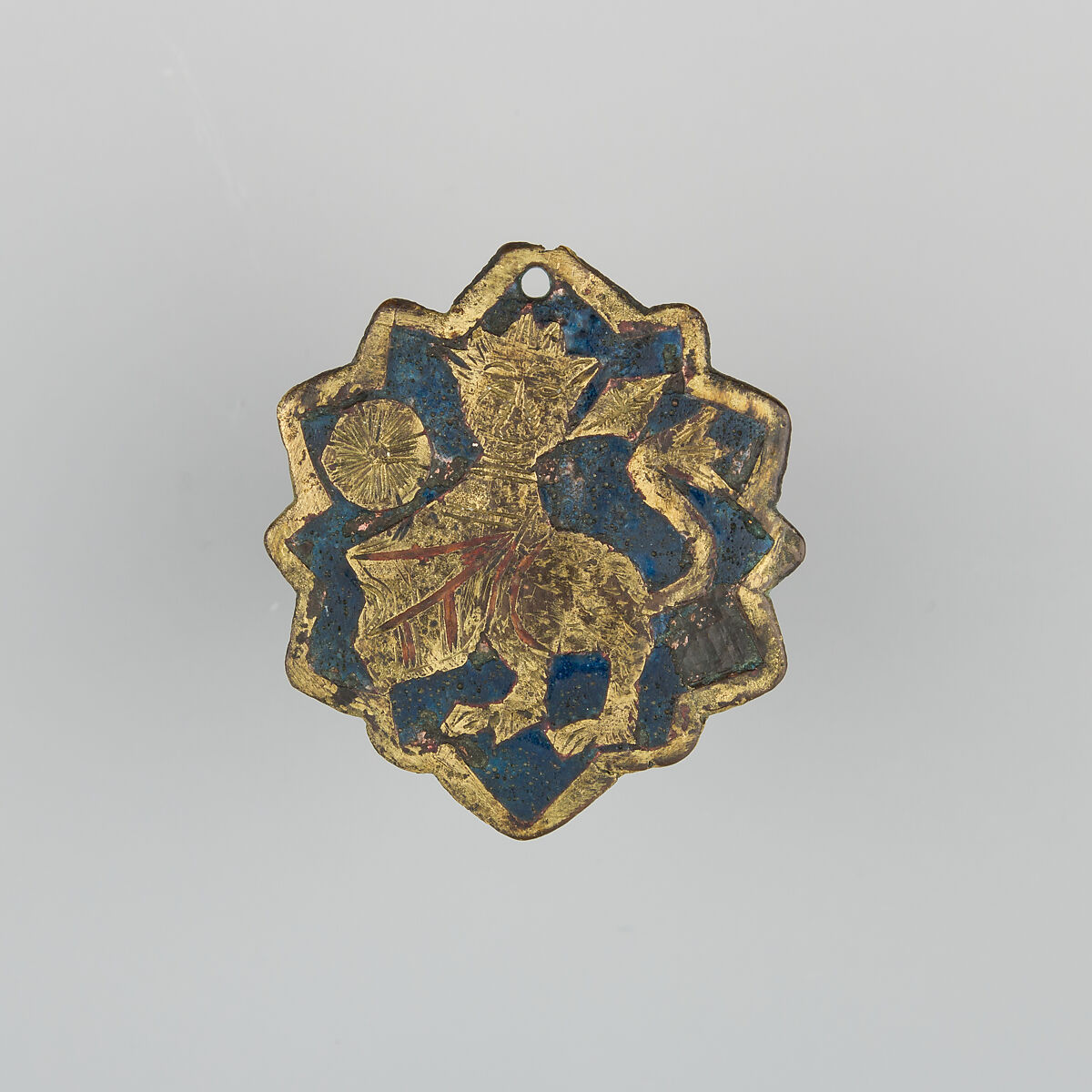 Heraldry, or coat-of-arms, were vitally important in Europe throughout the Middle Ages and the Renaissance. Heraldic emblems were used to identify noble families, cities, regions, and even countries. In addition to being displayed on shields and flags, heraldry was incorporated into architectural decoration on the interior and the exterior of buildings, on furniture, works of art, clothing, and horse equipment. Harness pendants, like this example, would have been attached to a headstall, bridle, or other straps making up the tack of a horse ridden by a nobleman or noblewoman, or a member of their household. Many harness pendants also have decoration that is simply ornamental, or have symbols that are not specifically heraldic in nature.