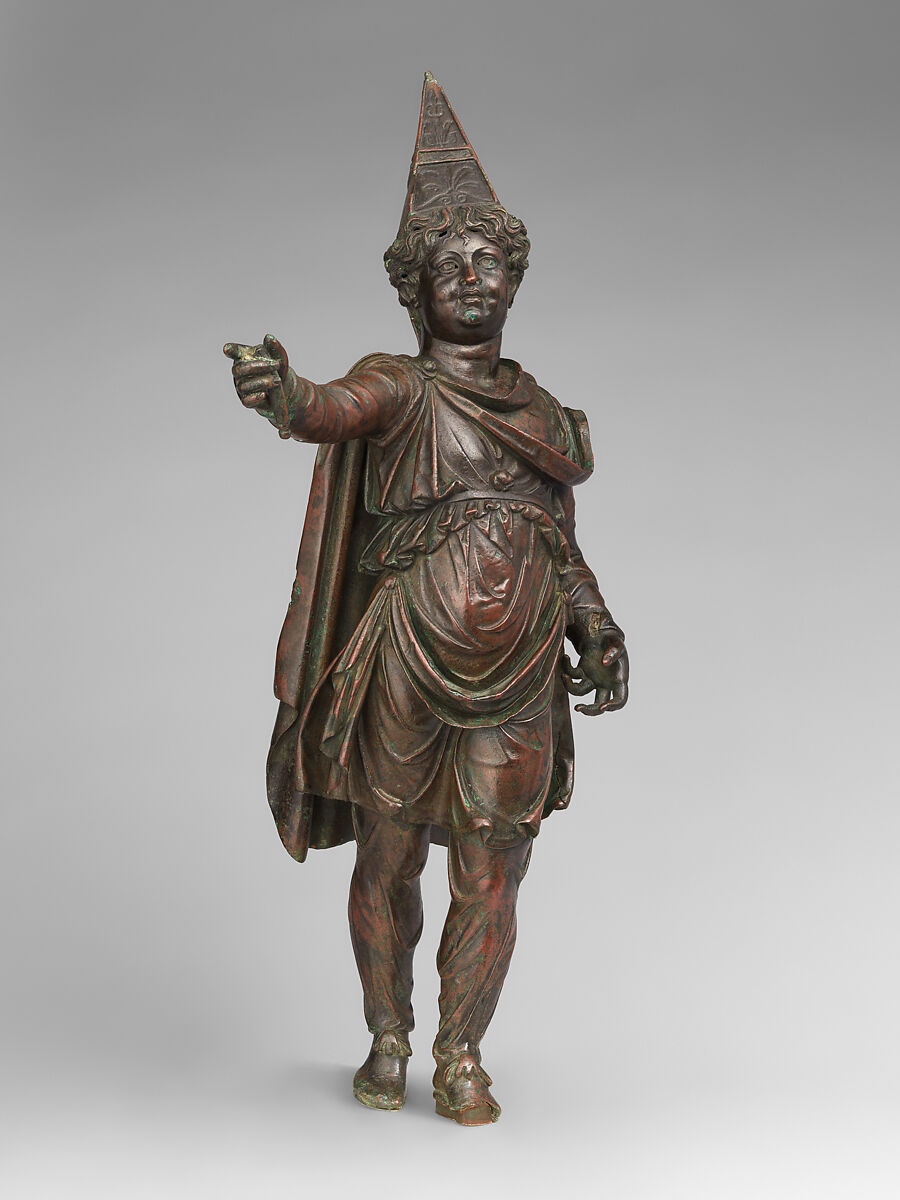 The subject's identity has been much debated and remains a mystery. He may represent Attis, a god of vegetation from Phrygia in central Anatolia. It has also been suggested that the existence of two copies of the same statuette may reflect a double geographical reference—that is, if set up together, the twin figures could be identified as the personifications of Armenia Major and Armenia Minor. However, the images are so similar that more likely they represent the same individual. Most recently, the statuette has been identified as a portrait of Alexander Helios, son of Mark Antony and Cleopatra VII, as prince of Armenia after Mark Antony's conquest in 34 B.C. On the other hand, the mannered style, exotic dress, and moderate scale of this figure likely signal a decorative function for the statuette, possibly as a lamp or incense-burner stand.