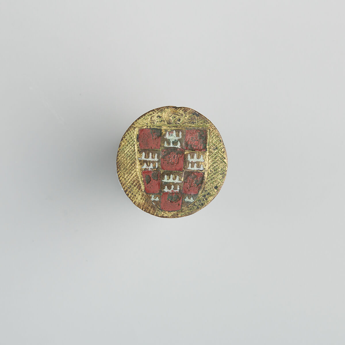 Heraldry, or coat-of-arms, were vitally important in Europe throughout the Middle Ages and the Renaissance. Heraldic emblems were used to identify noble families, cities, regions, and even countries. In addition to being displayed on shields and flags, heraldry was incorporated into architectural decoration on the interior and the exterior of buildings, on furniture, works of art, clothing, and horse equipment. Harness pendants, like this example, would have been attached to a headstall, bridle, or other straps making up the tack of a horse ridden by a nobleman or noblewoman, or a member of their household. Many harness pendants also have decoration that is simply ornamental, or have symbols that are not specifically heraldic in nature.