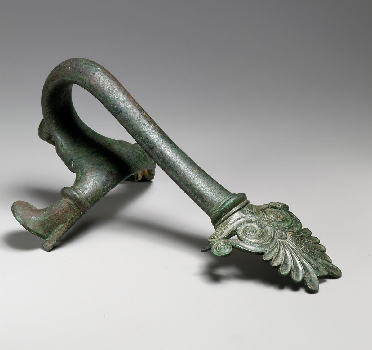The embellishment of the handle shows the traditional combination of the upper body of a woman and a palmette.
