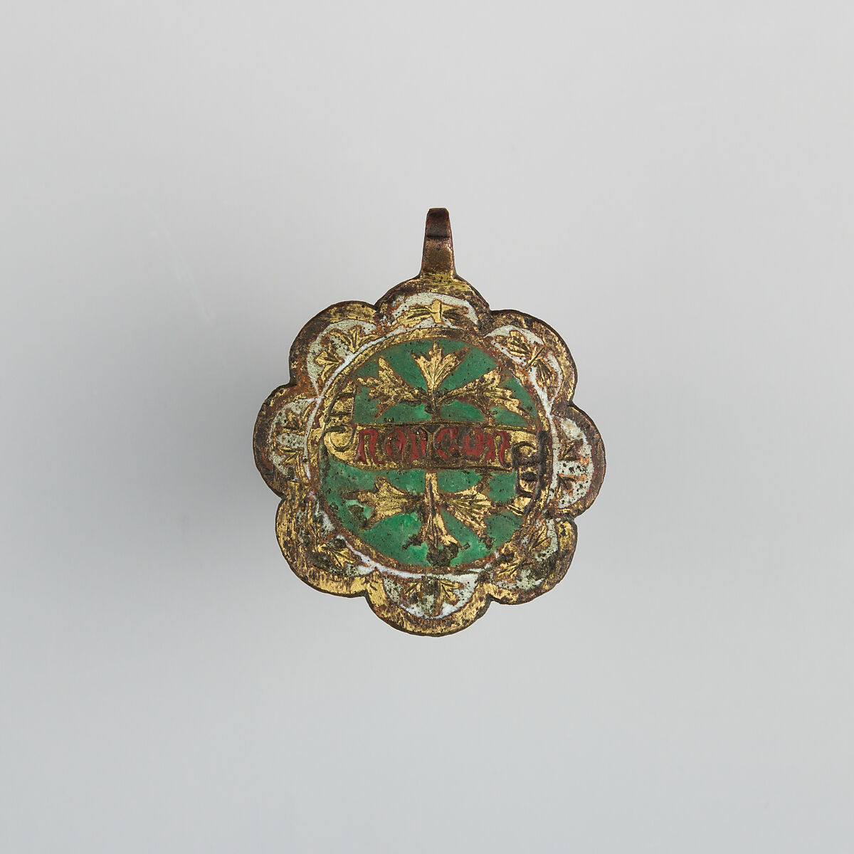 Heraldry, or coat-of-arms, were vitally important in Europe throughout the Middle Ages and the Renaissance. Heraldic emblems were used to identify noble families, cities, regions, and even countries. In addition to being displayed on shields and flags, heraldry was incorporated into architectural decoration on the interior and the exterior of buildings, on furniture, works of art, clothing, and horse equipment. Harness pendants, like this example, would have been attached to a headstall, bridle, or other straps making up the tack of a horse ridden by a nobleman or noblewoman, or a member of their household. Many harness pendants also have decoration that is simply ornamental, or have symbols that are not specifically heraldic in nature.