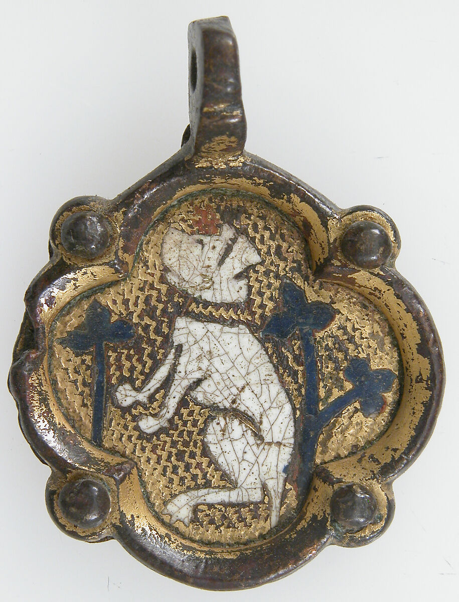 Heraldry, or coat-of-arms, were vitally important in Europe throughout the Middle Ages and the Renaissance. Heraldic emblems were used to identify noble families, cities, regions, and even countries. In addition to being displayed on shields and flags, heraldry was incorporated into architectural decoration on the interior and the exterior of buildings, on furniture, works of art, clothing, and horse equipment. Harness pendants, like this example, would have been attached to a headstall, bridle, or other straps making up the tack of a horse ridden by a nobleman or noblewoman, or a member of their household. Many harness pendants also have decoration that is simply ornamental, or have symbols that are not specifically heraldic in nature.