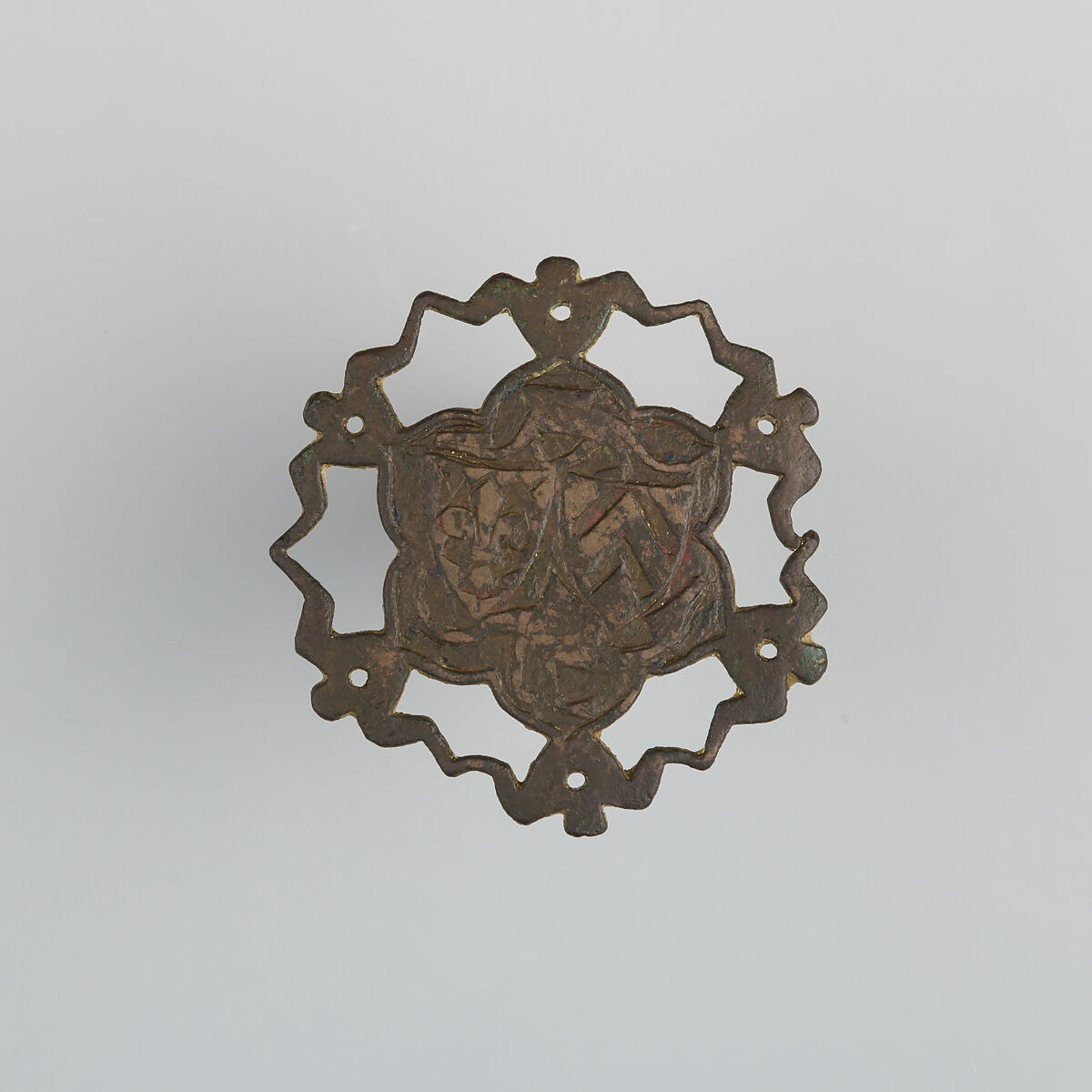 Heraldry, or coat-of-arms, were vitally important in Europe throughout the Middle Ages and the Renaissance. Heraldic emblems were used to identify noble families, cities, regions, and even countries. In addition to being displayed on shields and flags, heraldry was incorporated into architectural decoration on the interior and the exterior of buildings, on furniture, works of art, clothing, and horse equipment. Harness pendants, like this example, would have been attached to a headstall, bridle, or other straps making up the tack of a horse ridden by a nobleman or noblewoman, or a member of their household. Many harness pendants also have decoration that is simply ornamental, or have symbols that are not specifically heraldic in nature.