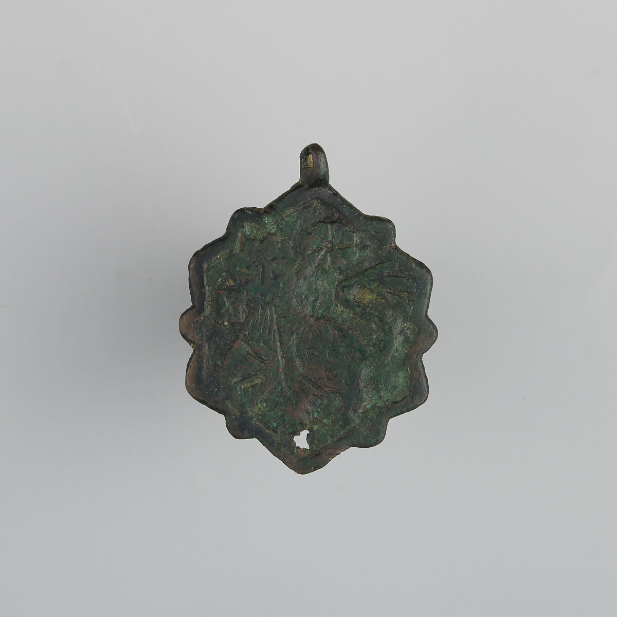 Heraldry, or coat-of-arms, were vitally important in Europe throughout the Middle Ages and the Renaissance. Heraldic emblems were used to identify noble families, cities, regions, and even countries. In addition to being displayed on shields and flags, heraldry was incorporated into architectural decoration on the interior and the exterior of buildings, on furniture, works of art, clothing, and horse equipment. Harness pendants, like this example, would have been attached to a headstall, bridle, or other straps making up the tack of a horse ridden by a nobleman or noblewoman, or a member of their household. Many harness pendants also have decoration that is simply ornamental, or have symbols that are not specifically heraldic in nature.