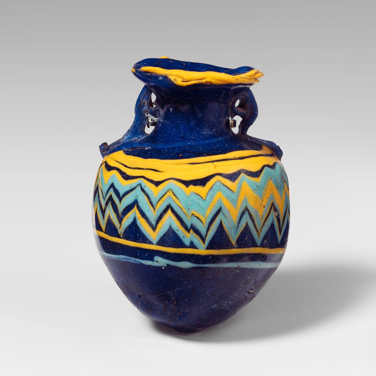 Glass vessels such as these first appeared in the Greek world late in the sixth century B.C. They originally contained perfumes or scented oils used in funerary rites, after which the bottles were left in the grave.