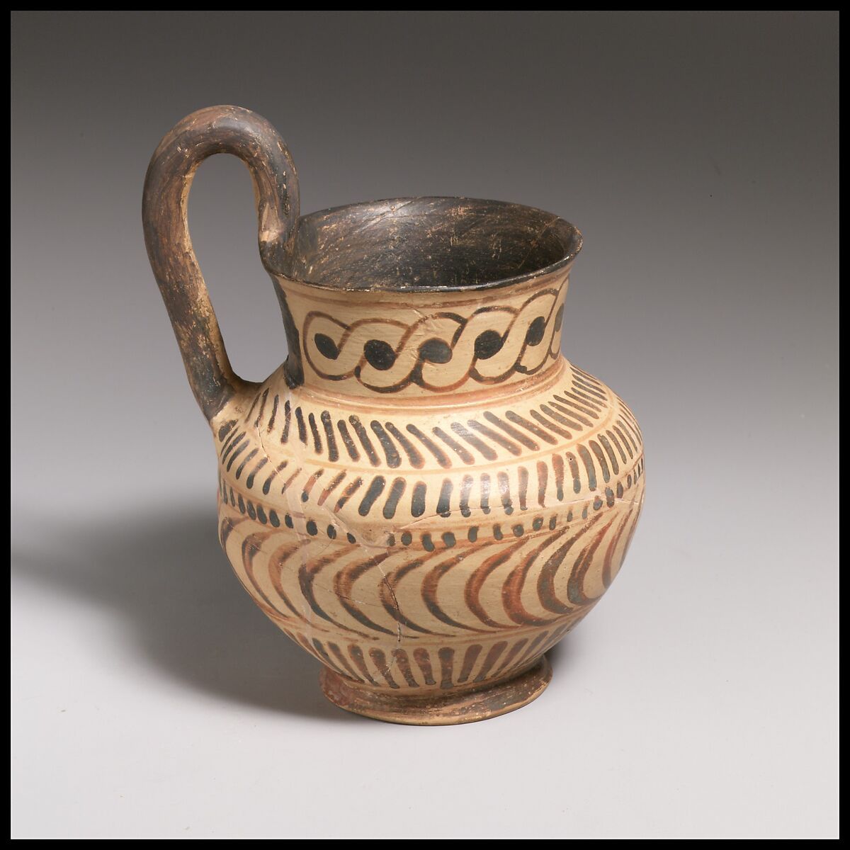 • Dimensions: H. 6 in. (15.3 cm); diameter of mouth 3 1/4 in. (8.2 cm); diameter of body 4 3/8 in. (11.2 cm)
