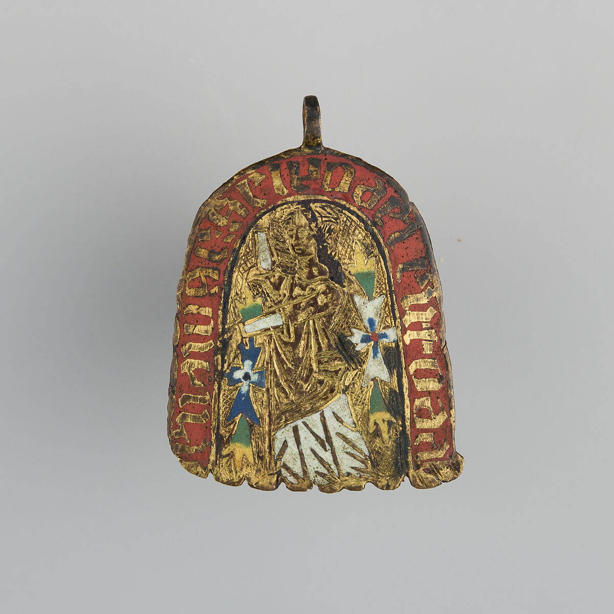 Heraldry, or coat-of-arms, were vitally important in Europe throughout the Middle Ages and the Renaissance. Heraldic emblems were used to identify noble families, cities, regions, and even countries. In addition to being displayed on shields and flags, heraldry was incorporated into architectural decoration on the interior and the exterior of buildings, on furniture, works of art, clothing, and horse equipment. Harness pendants, like this example, would have been attached to a headstall, bridle, or other straps making up the tack of a horse ridden by a nobleman or noblewoman, or a member of their household. Many harness pendants also have decoration that is simply ornamental, or have symbols that are not specifically heraldic in nature.