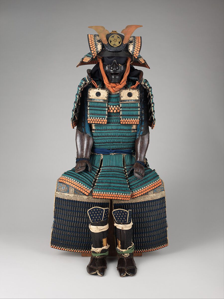 The armor is decorated in several places with the plum blossom mon (heraldic emblem) of the Maeda family, who were daimyo (feudal lords) of Kaga Province (the southern part of present-day Ishikawa Prefecture) and the second largest landowners in Japan after the Tokugawa family.