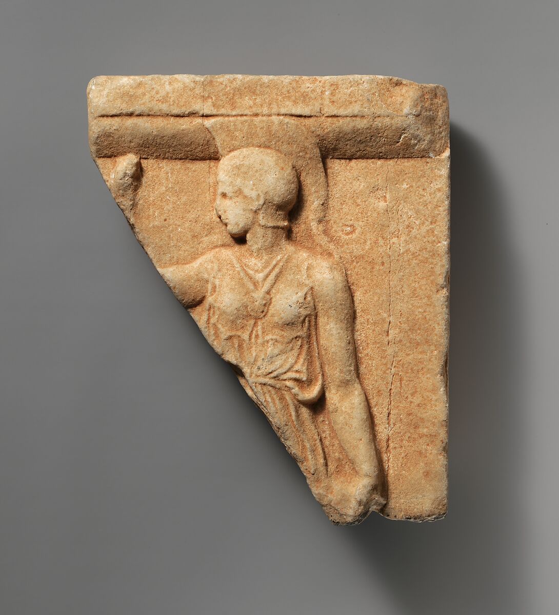 - Title:Marble fragment of a votive relief with Athena