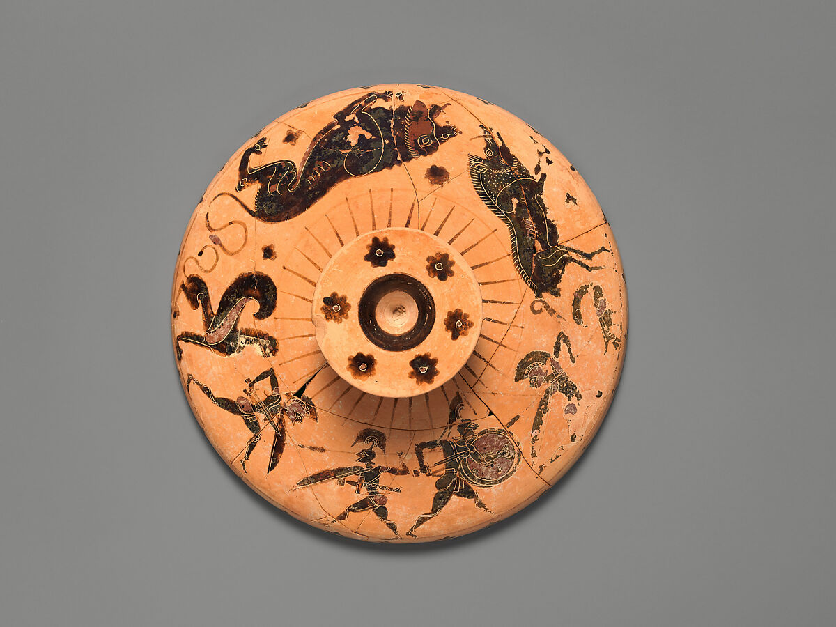 - Title: Terracotta lid of a lekanis (lidded bowl)