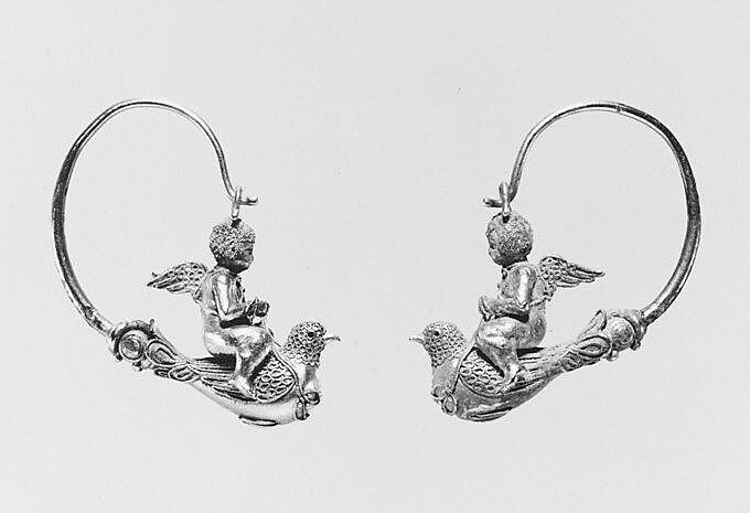 - Title: Pair of gold hoop earrings with Erotes riding doves