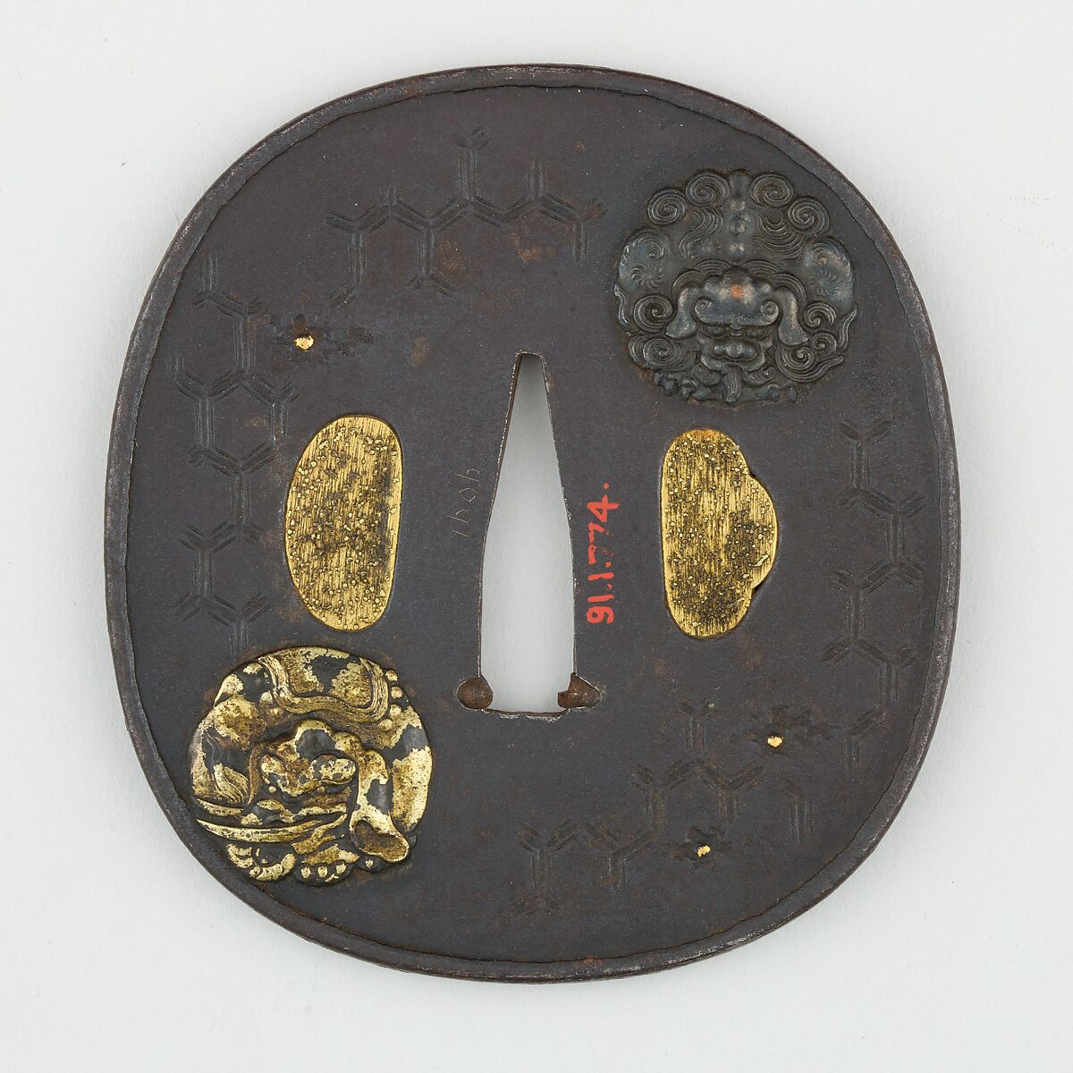 - Title:Sword Guard (Tsuba) Depicting Shishi Lion and Elephant (獅子象図鐔)