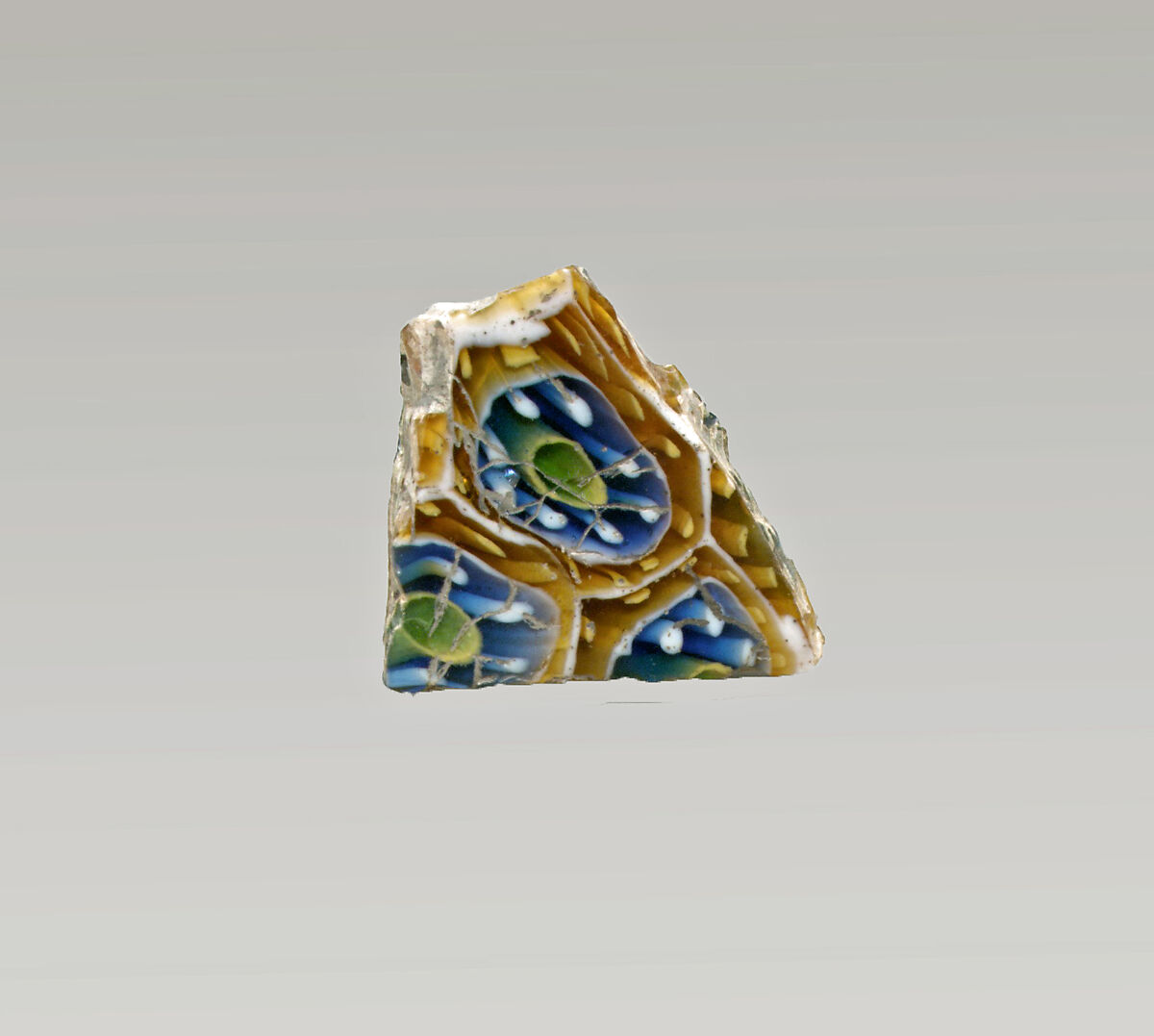 - Title:Glass mosaic ribbed bowl fragment