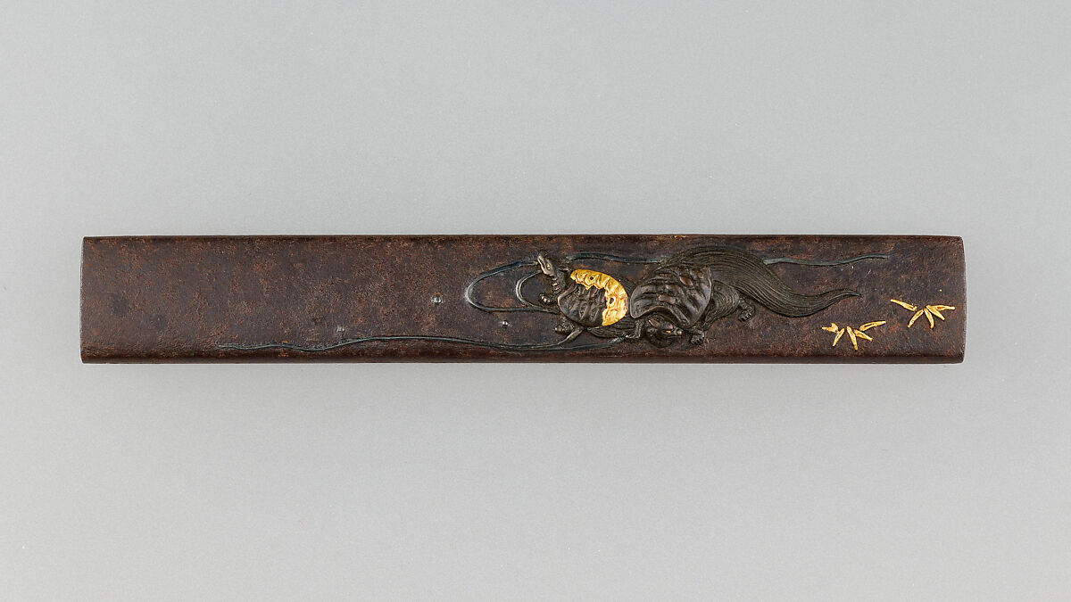 A kozuka is a handle of a by-knife that is part of a sword mounting. It is kept in a slot on the reverse of a katana scabbard, often with a matching kōgai (hairdressing tool).