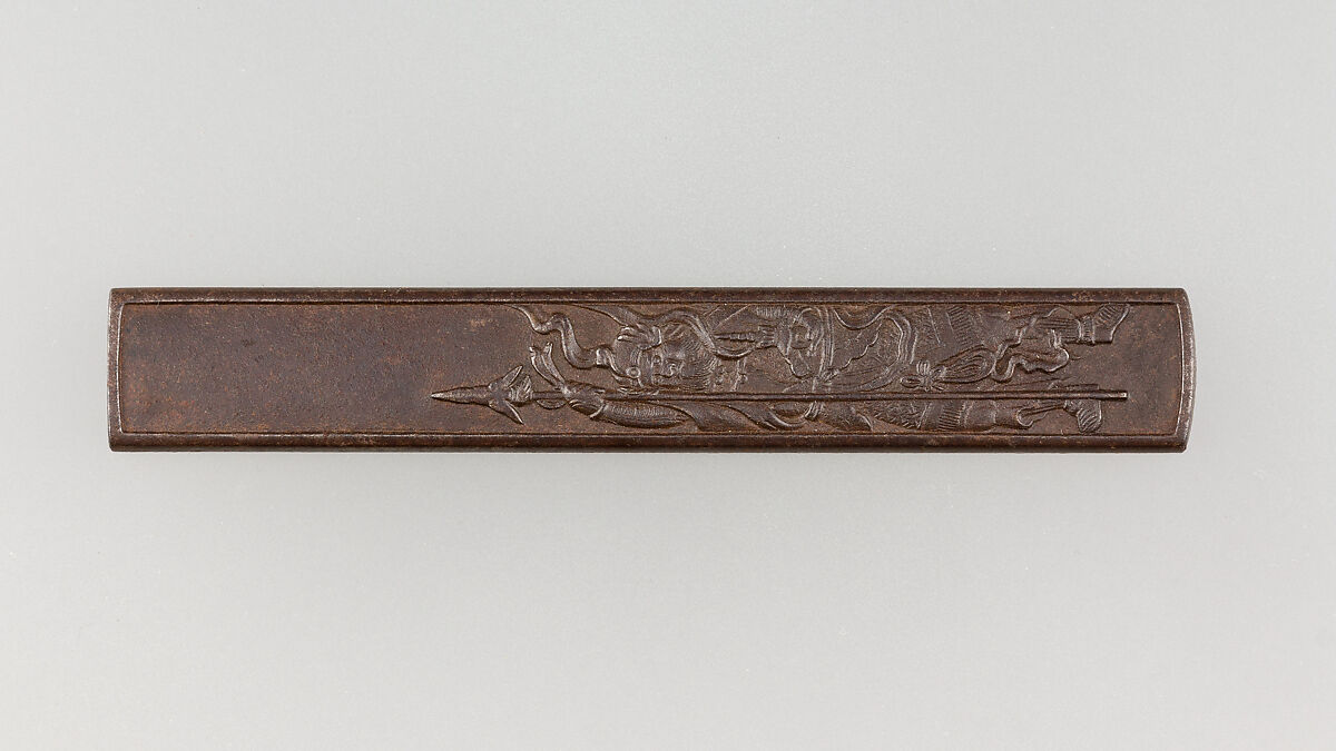 A kozuka is a handle of a by-knife that is part of a sword mounting. It is kept in a slot on the reverse of a katana scabbard, often with a matching kōgai (hairdressing tool).