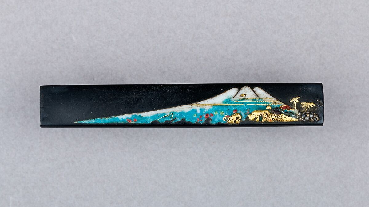 - Medium: Copper-gold alloy (shakudō), enamel, gold, silver