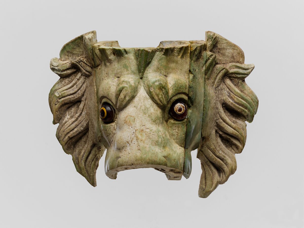 - Title: Bone lion's head protome with glass eyes