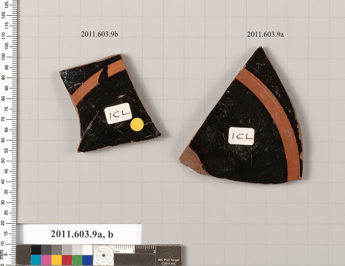 a: interior, part of tondo and circle with incision; exterior, reserved stripe
