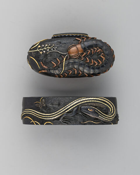 - Medium: Copper-gold alloy (shakudō), gold, copper-silver alloy (shibuichi)