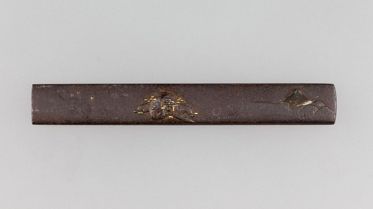 A kozuka is a handle of a by-knife that is part of a sword mounting. It is kept in a slot on the reverse of a katana scabbard, often with a matching kōgai (hairdressing tool).