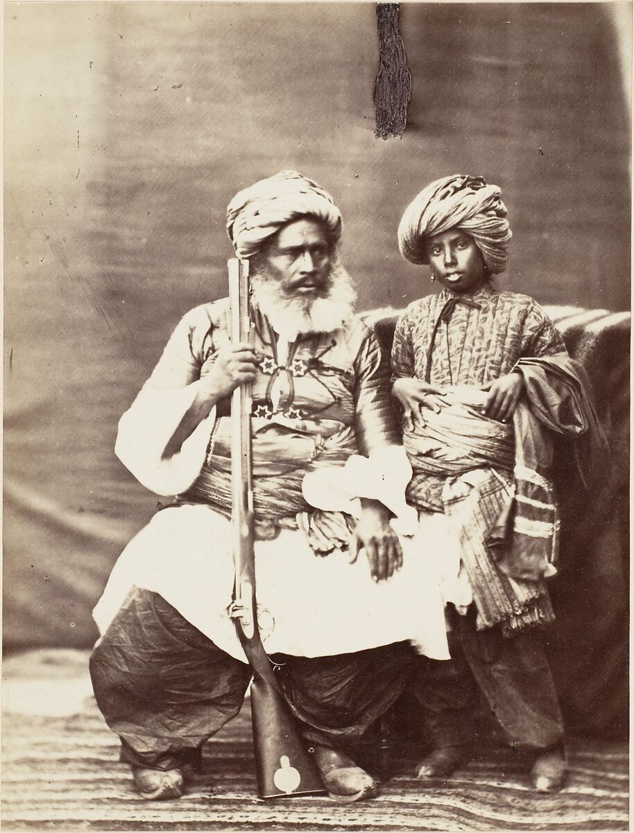 - Title: [Turbaned Man Holding Rifle with Boy Alongside]
