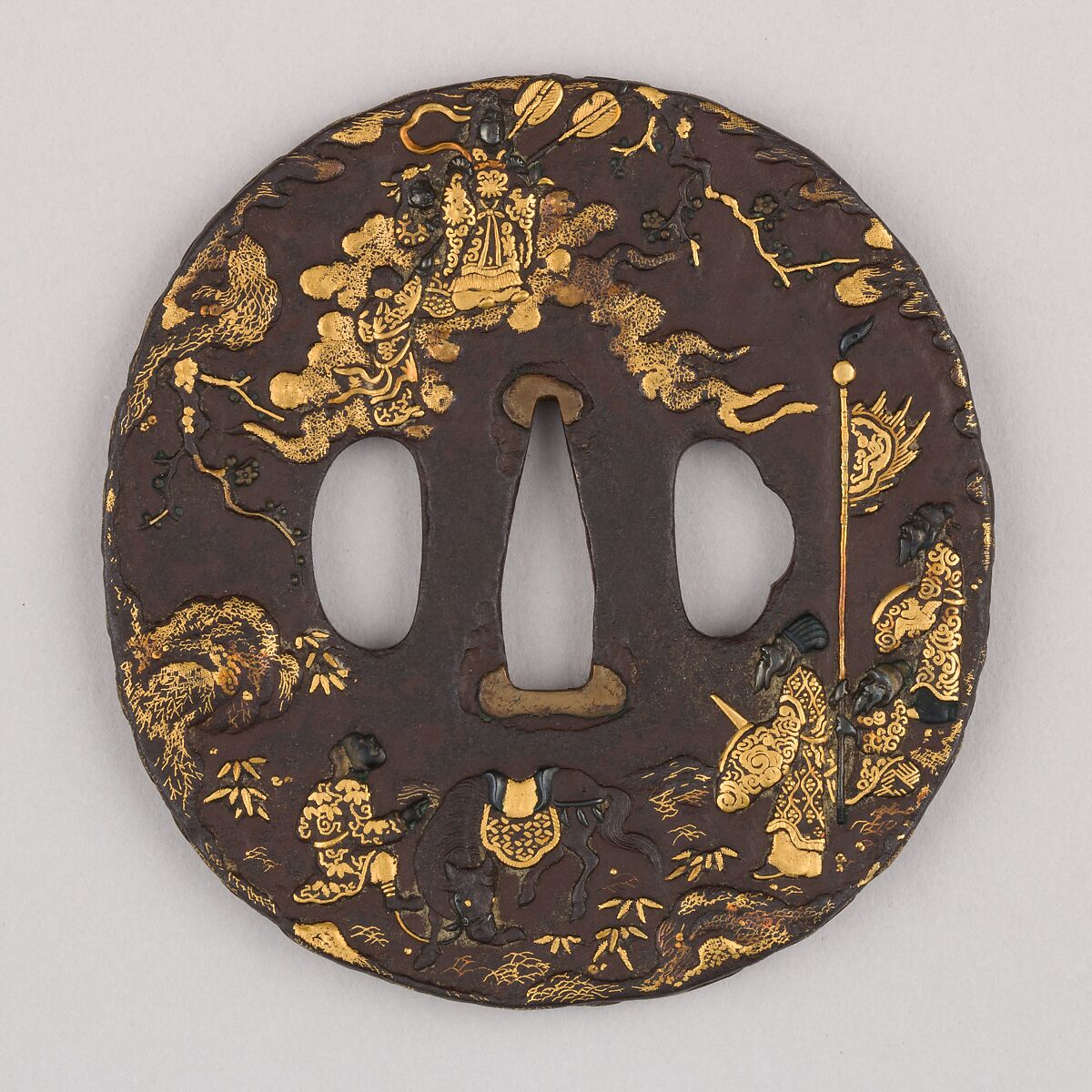- Medium: Iron, gold, silver, copper-gold alloy (shakudō), copper