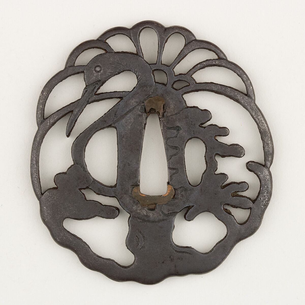 A tsuba is a sword guard and part of a sword mounting. It is mounted between the sword’s blade and grip to protect the user’s hands.