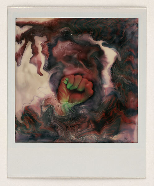 Samaras was already well known as a sculptor, painter, and performance artist when he began experimenting with photography in 1969. Working with a Polaroid camera, he created hundreds of lush, idiosyncratic images of his favorite subject: himself. In his Photo-Transformations series of 1973-76, Samaras extended the formal possibilities of the Polaroid by using his hand or a stylus to gouge, smear, and stipple the wet dye emulsions of the instant prints while they were developing. Here, the artist seems to dissolve into a watery reflection while his fist threatens to punch through the picture plane into the viewer's space.