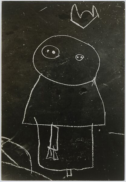 Helen Levitt practiced photography with a small handheld camera on the streets of New York, making tender depictions of ordinary city people, especially children. The street was a stage upon which her young subjects played games, performed improvisational dramas, and made fantastic, untutored chalk drawings such as this figure with double pupils and a hovering crown. For Levitt, graffiti and children's drawings were present-day emblems of a precivilized, magical art, both spontaneous and archetypal.