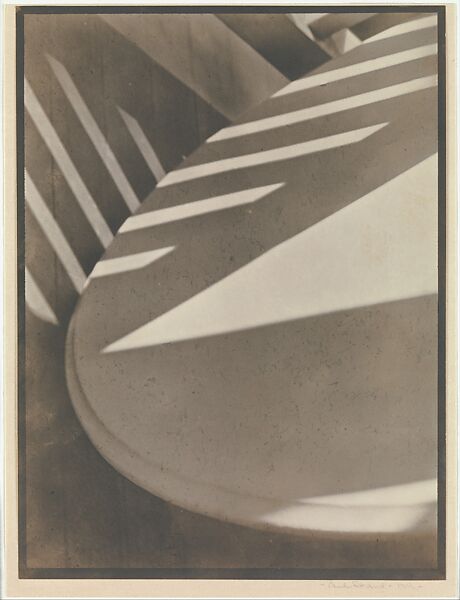 This picture is among the first photographic abstractions to be made intentionally. When Alfred Stieglitz published a variant of it in "Camera Work," he praised Strand's results as "the direct expression of today." Porch shadows and tipped-over tables are not intrinsically modern, but Strand's picture of them is, for it does not depend upon recognizable imagery for its effect, but rather on the precise relations of forms within the frame. This print, the only one Strand seems to have made from the negative, is on Satista paper, a wartime replacement for platinum papers.