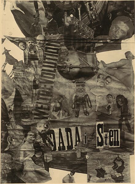 This new, fragmented art of cut and pasted clippings from the mass media allowed the Dadaists, in the words of George Grosz, to say "in pictures what would have been banned by the censors." Here, Höch sets into motion a swirling, anarchic panoply of military leaders, crowds, spinning machine parts, cabaret dancers, and Dadaist pranksters; the work's engagement with the social praxis--in terms of both its subject and its construction--marks a decisive rupture with traditional bourgeois modes of expression. Höch often reworked her photomontages, and this image records a crucial revision in the image's development: the removal of the charged textual fragment "Weltrevolution" (World Revolution) and its replacement by the relatively innocuous "Die grosse Welt Dada" (Big Dada World).