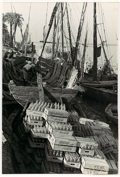 - Title:[Cases of Coca-Cola Bottles on Bank of River, with Sailing Vessels]