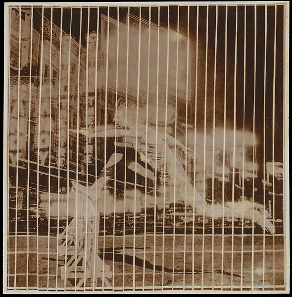 In 1926 Lissitzky joined colleagues from the Association of New Architects (ASNOVA) in designing a new sports club, and he created this frenzied representation of an urban athlete as a model for a large frieze. He combined images of at least three separate elements-the runner, the track and hurdle, and a double exposure of Times Square-into a single print and then sliced that print into strips, creating an object that is both constructed and deconstructed. The visual result is a suspenseful moment-shattered, separated, and stretched-that weaves the mechanics of man into a dynamic tapestry of industrial optimism. The heroic pose of the runner, transposed to the center of New York City, becomes an emblem of triumphant human achievement: man and metal engage in an ambitious leap across several voids in the service of industrial progress.