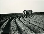 Between 1935 and 1942, Lange worked for the photographic unit of the Farm Security Administration, photographing migrant workers, sharecroppers, tenant farmers, and other victims of the Depression, primarily in the South and West. In 1939 she and her husband, the historian Paul S. Taylor, published An American Exodus, a book documenting the migration of thousands of farmers and laborers from the dust bowls of the South to California's fertile valleys. They included this image of a farmhouse surrounded by machine-furrowed fields, with the caption: "Tractors replace not only mules, but people. They cultivate to the very door of the houses of those whom they replace."
