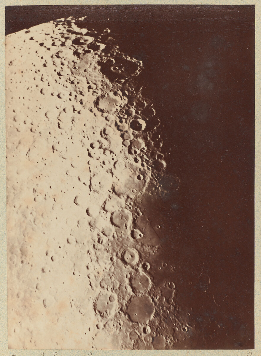 In 1885 the Henry brothers, astronomers at the Paris Observatory, built a refractor telescope with a sophisticated clock drive designed specifically for photography. They used the instrument to photograph the surface of the moon, as seen here, along with many other astronomical objects, including planets, asteroids, nebulae, and star fields.