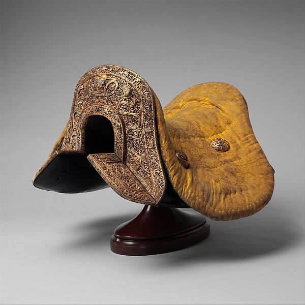 - Medium: Iron, gold, copper, wood, leather, textile (silk), varnish