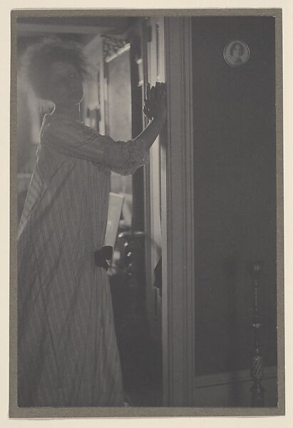 Zaida Ben-Yusuf, who opened a fashionable portrait studio in New York in 1897, was among the photographers included in Day’s blockbuster show, which eventually took place at the Royal Photographic Society and, in 1901, at the Photo-Club de Paris. Unlike Day’s more formal portraits and figure studies, his portrait of Ben-Yusuf gives the impression of spontaneity and accident, with the subject off-center and backlit by a sunny window in the next room.