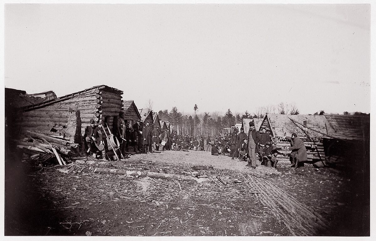 - Title: [Winter Quarters of Unidentified Union Army Regiment with Two Rows of Log Cabins]