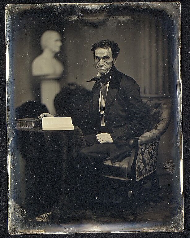 Rufus Choate (1799-1859), one of America's most capable lawyers and statesmen, served in both the state and federal government and was known for his classical orations. It is not surprising that Southworth & Hawes, whose studio adjoined Choate's law office, asked him to pose. Only after repeated requests from the photographers, who promised the sitting would take only fifteen minutes, did the busy lawyer agree. On the appointed day, Choate posed four or five times with the appropriate props-a law book and a bust of an orator-before rushing back to his client-filled office. Choate's famous wild locks, disheveled clothing, and haggard features are recorded in this faithful portrait of an overworked man who frequently suffered from debilitating headaches yet was driven by a prodigious nervous energy and an intense love of his profession.