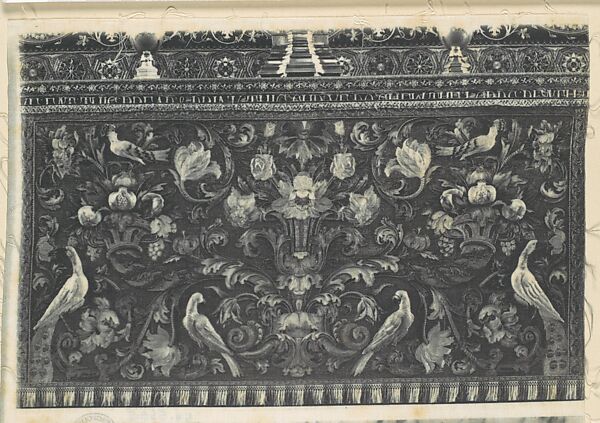 A bookseller turned photographer, Evans created some of the most famous pictures of architecture in photographic history. Known for his meticulous printing, mounting, and presentation of singular works, Evans approached his subjects holistically, carefully planning and producing a representative collection of images for each site. His last major undertaking of this type, the Durham Cathedral, is a case in point. The platinum photograph of the altar cloth, which Evans printed on a piece of cotton textile to mimic the needlework of the original, is an exquisitely rendered detail from a pictorial program meant to capture every aspect of the cathedral.