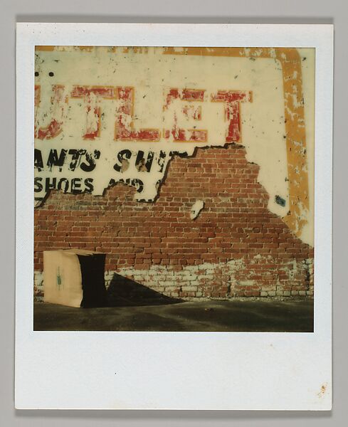 In October 1973, Evans began making photographs with a Polaroid camera, a new technology that made instant color prints. He used it voraciously over the next year, including on a visiting lectureship at the University of Alabama at Tuscaloosa. During his stay, he returned to Hale County, the site where nearly forty years earlier he made the classic Depression-era photographs of tenant farmers and their families that were then published in 1941 as Let Us Now Praise Famous Men (with text by James Agee).