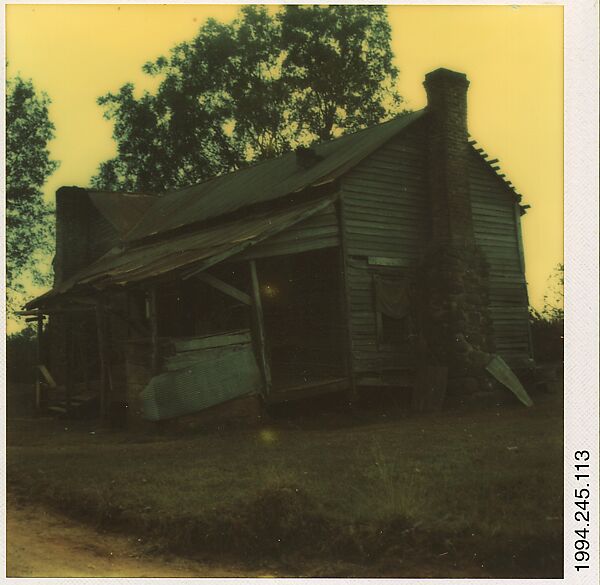 In October 1973, Evans began making photographs with a Polaroid camera, a new technology that made instant color prints. He used it voraciously over the next year, including on a visiting lectureship at the University of Alabama at Tuscaloosa. During his stay, he returned to Hale County, the site where nearly forty years earlier he made the classic Depression-era photographs of tenant farmers and their families that were then published in 1941 as Let Us Now Praise Famous Men (with text by James Agee).