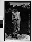 [Walker Evans with Cane Before Hillside and Houses, Ossining, New York]